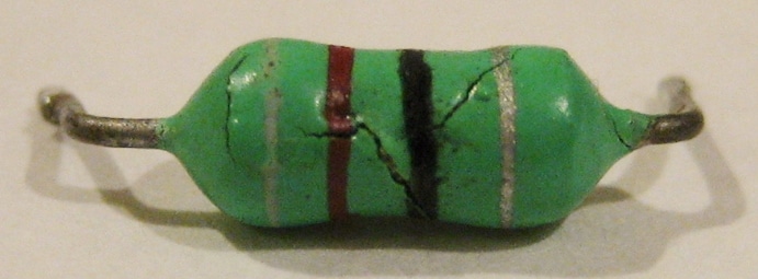 ...and voila!- it works.  Pretty proud of myself, I replaced the IC in the second light and…… nothing.  Probably a bad IC, I told myself.  Replaced it again and….. nothing.  A close examination of the inductor revealed serious surface cracks.  I ordered a handful of J.W. Miller 542-77F820-RC (82uH) inductors from Mouser Electronics, they arrived quickly, and the second light was back in business.